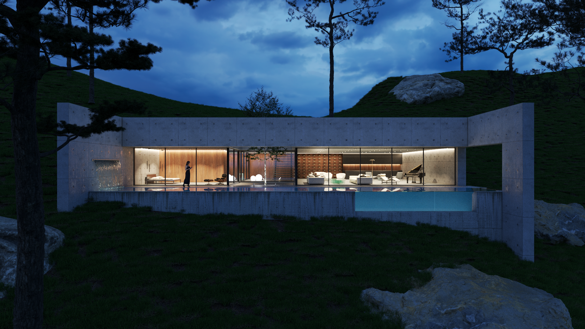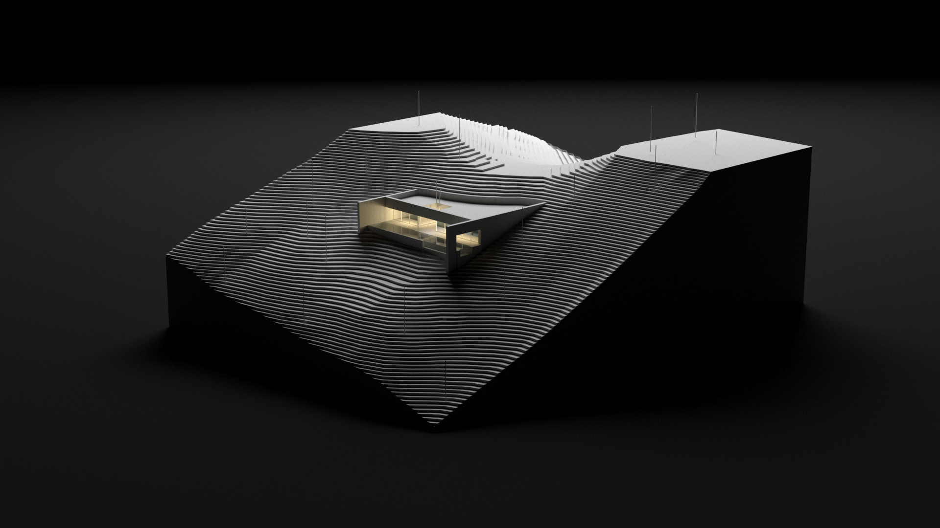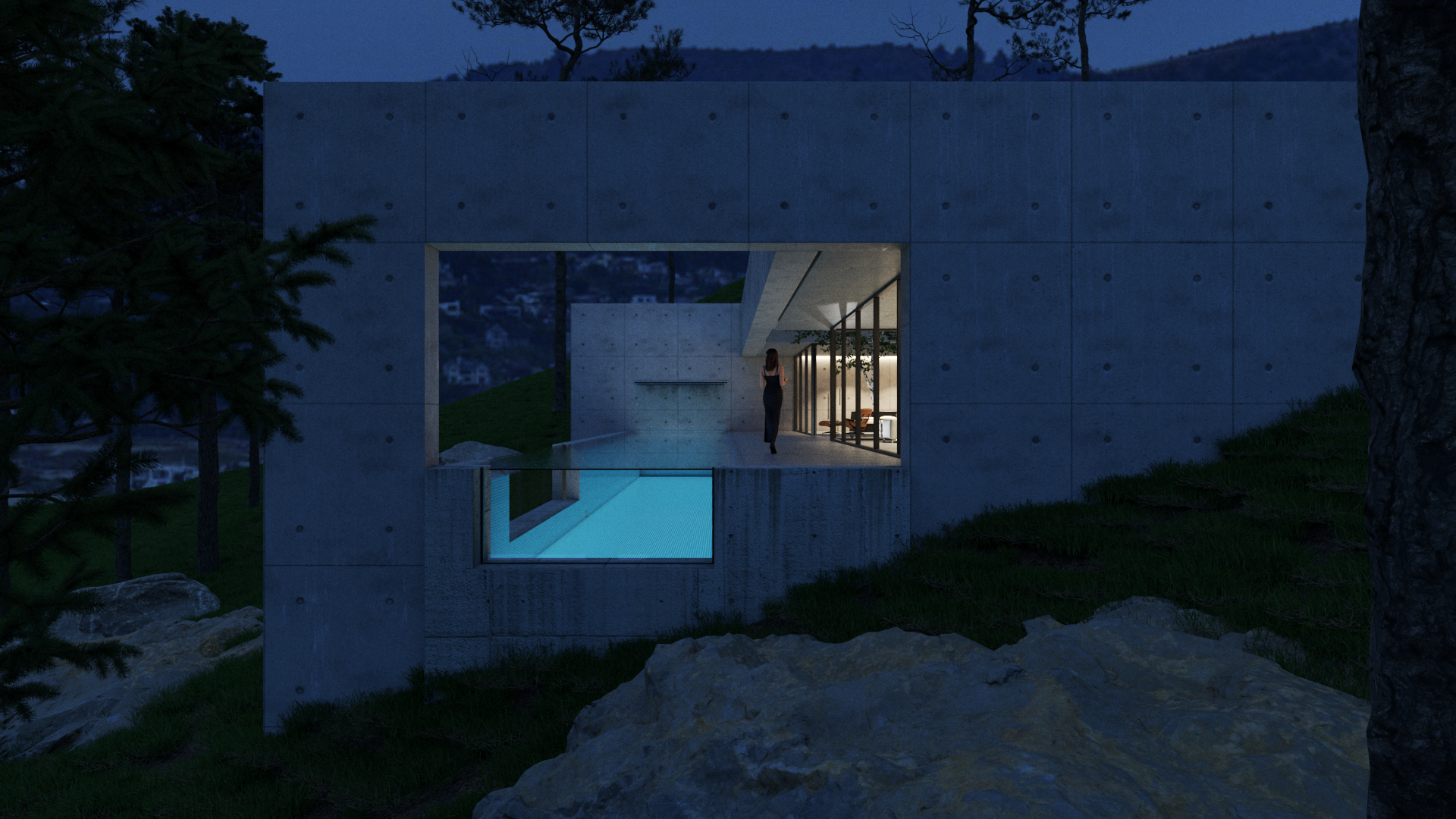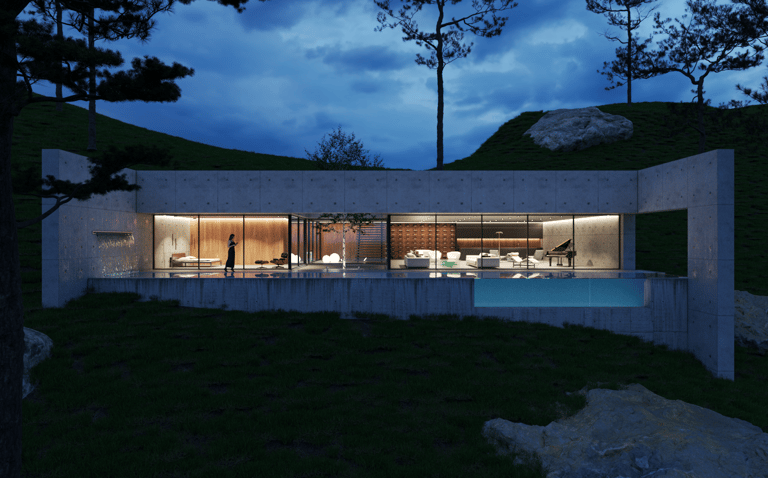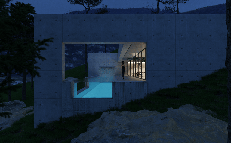 El proyecto se asienta en la zona montañosa de Zapallar, integrándose armoniosamente con el entorno y encauzando las vistas hacia el mar. Dos patios internos delimitan las áreas pública y privada, permitiendo la entrada de luz natural y enriqueciendo los espacios más profundos de la vivienda con una exuberante vegetación.