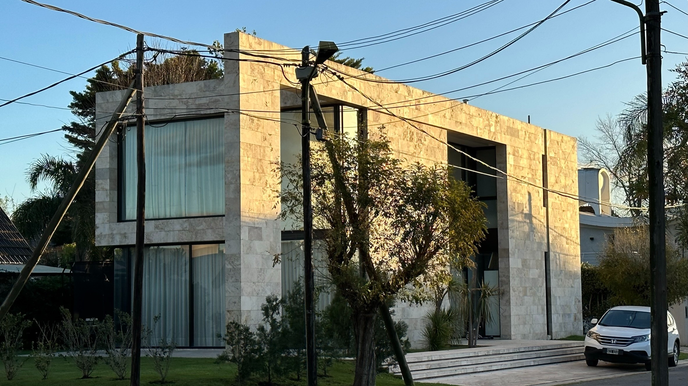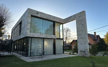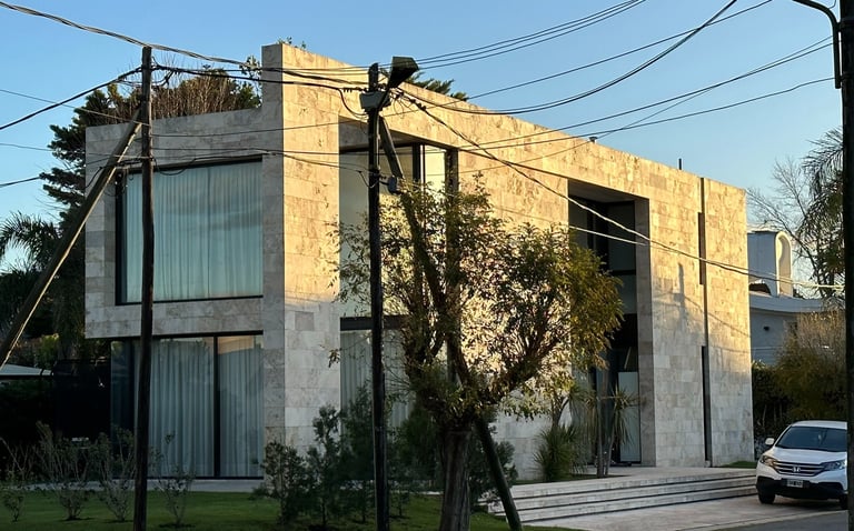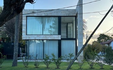 El proyecto se sitúa en un lote de esquina que se cierra hacia la calle principal, creando un espacio de carácter privado que se conecta armoniosamente con un jardín. Las líneas de la fachada se extienden más allá de los límites internos, desdibujando la división entre el interior y el exterior.