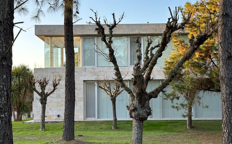 El proyecto se ubica en un terreno lindero a una plaza con abundante vegetación, priorizando las visuales hacia la misma con ventanas de piso a techo a lo largo de toda la fachada, disipando el limite entre el interior y el exterior.