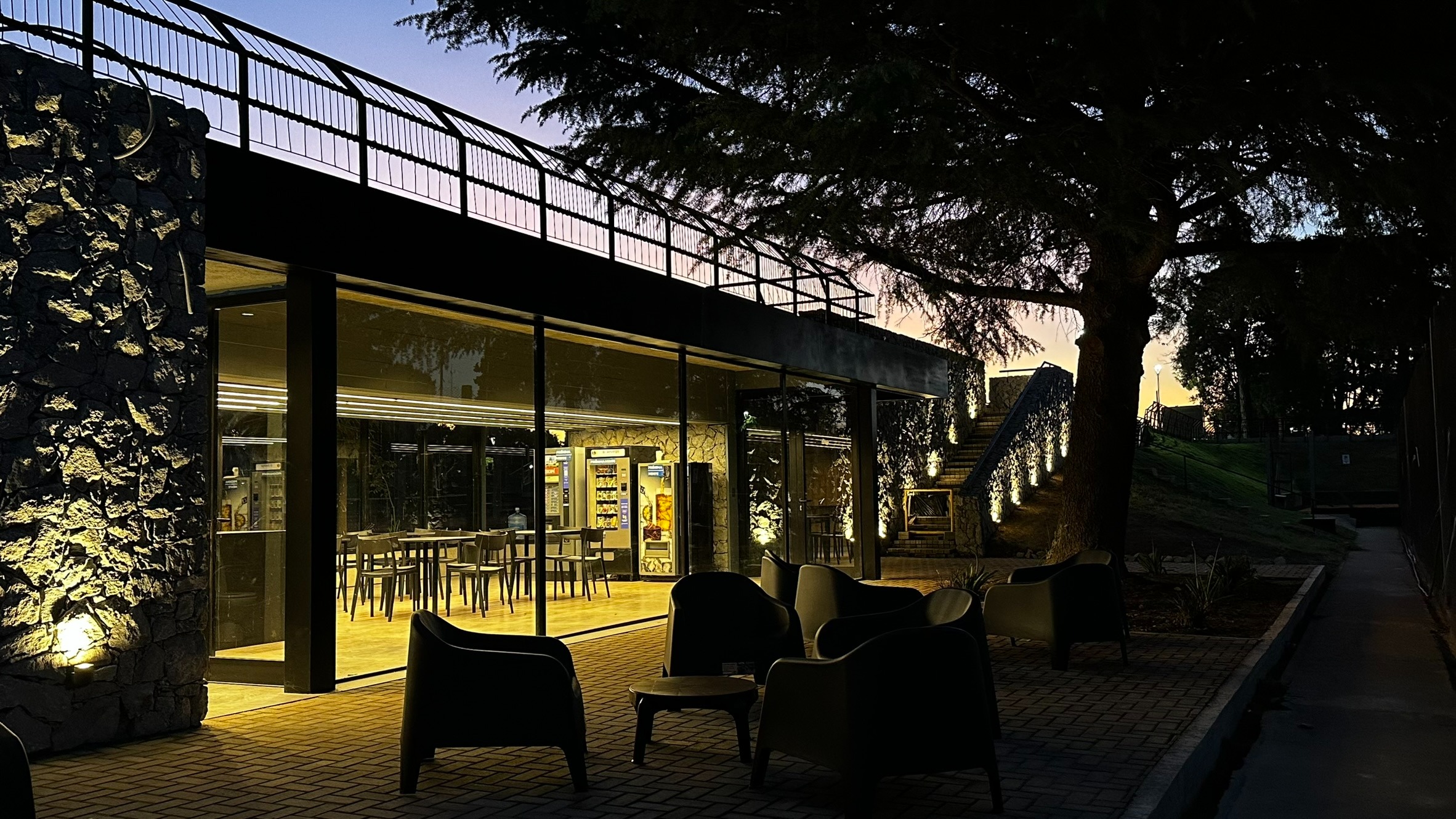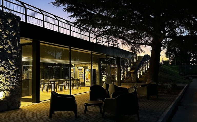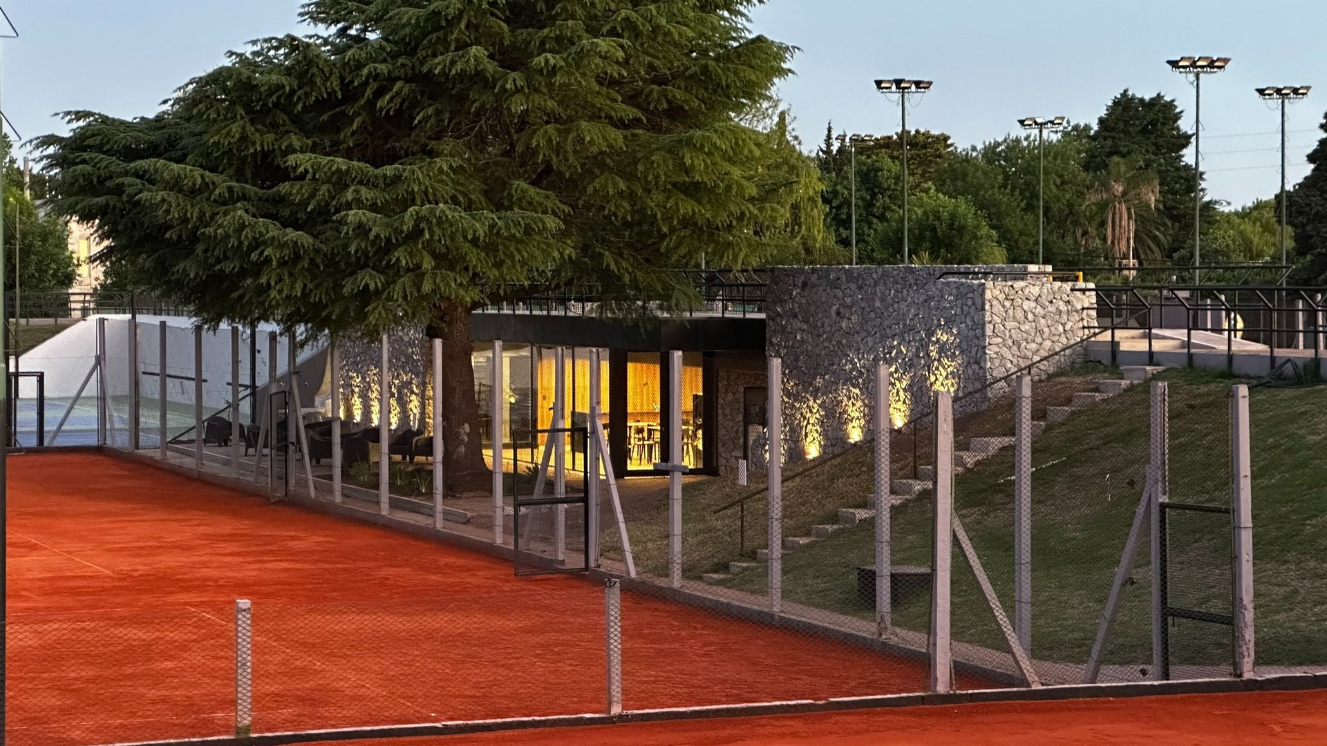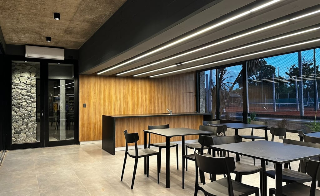 Este proyecto se sitúa en el corazón de las canchas de tenis del Country Golf El Sosiego, siendo nexo entre las mismas y generando un lugar de encuentro para jugadores. La propuesta fusiona materiales cálidos, como la piedra y la madera, creando un ambiente acogedor y armonioso que invita al descanso y la interacción.